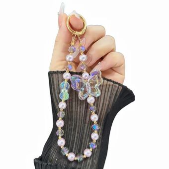Laser Crystal Butterfly Pearl Mobile Phone Chain(Translucent White)