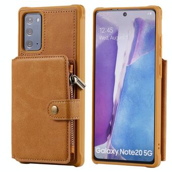 Zipper Shockproof Protective Case with Card Slots & Bracket & Photo Holder & Wallet Function For Samsung Galaxy Note20(Brown)