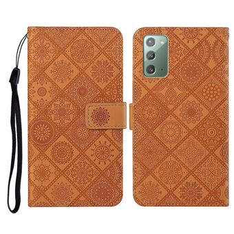 For Samsung Galaxy Note20 Ethnic Style Embossed Pattern Horizontal Flip Leather Case with Holder & Card Slots & Wallet & Lanyard(Brown)