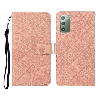 For Samsung Galaxy Note20 Ethnic Style Embossed Pattern Horizontal Flip Leather Case with Holder & Card Slots & Wallet & Lanyard(Pink)