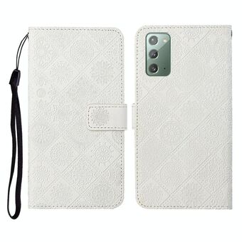 For Samsung Galaxy Note20 Ethnic Style Embossed Pattern Horizontal Flip Leather Case with Holder & Card Slots & Wallet & Lanyard(White)