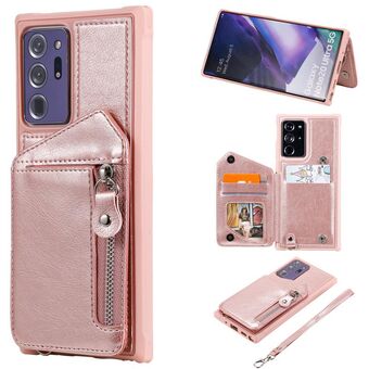 For Samsung Galaxy Note20 Ultra Zipper Double Buckle Shockproof Protective Case with Stand & Photo Holder & Wallet Function(Rose Gold)