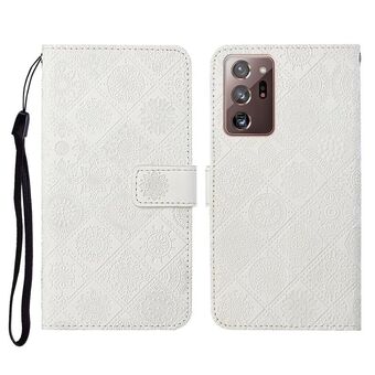 For Samsung Galaxy Note20 Ultra Ethnic Style Embossed Pattern Horizontal Flip Leather Case with Holder & Card Slots & Wallet & Lanyard(White)