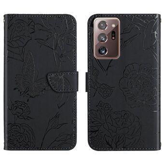 Θήκη τηλεφώνου Samsung Galaxy Note20 Ultra με δερμάτινη υφή, ανάγλυφο σχέδιο πεταλούδας και παιώνιας (Κόκκινο)