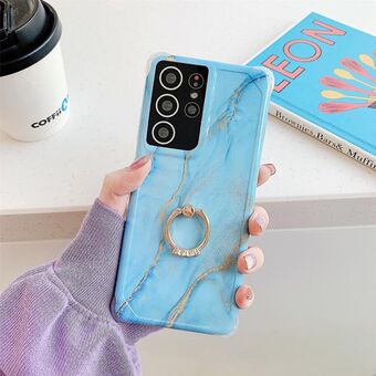 Θήκη τηλεφώνου IMD με επιχρυσωμένο μάρμαρο αντιασπασμικό για Samsung Galaxy Note20 Ultra (Μαύρο LQ1) με μεταλλική βάση δακτυλιδιού από ρητίνη.