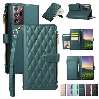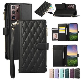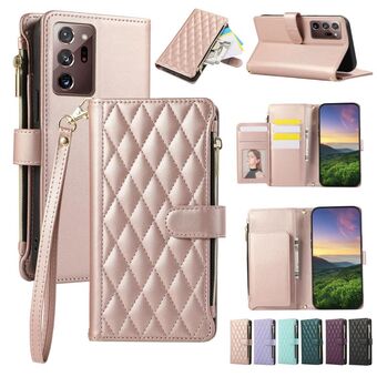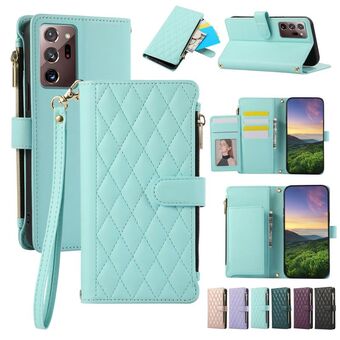 Για Samsung Galaxy Note20 Ultra Rhombic φερμουάρ πορτοφόλι δερμάτινη θήκη τηλεφώνου (Deep Purple)