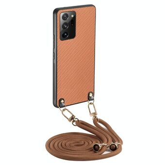 Για Samsung Galaxy Note20 Ultra Carbon Fiber Texture δέρμα πίσω κάλυμμα υπόθεση τηλεφώνου με λουράκι σταυρού (καφέ)