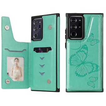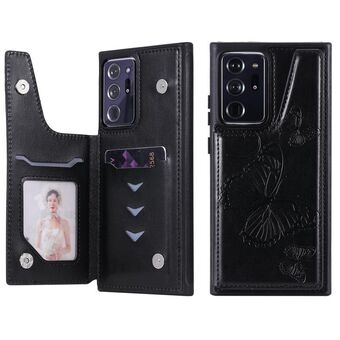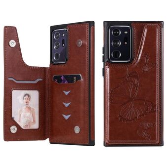 Θήκη προστασίας με ανάγλυφο σχέδιο πεταλούδας, αντικραδασμική, με βάση στήριξης, θήκες για κάρτες & κορνίζα φωτογραφίας για Samsung Galaxy Note20 Ultra (Χρυσορόδινο)