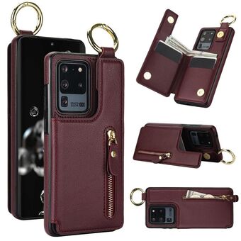 Για Samsung Galaxy S20 Ultra Litchi υφή φερμουάρ διπλή πόρπη κάρτα τσάντα υπόθεση τηλεφώνου (μωβ)