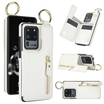 Για Samsung Galaxy S20 Ultra Litchi υφή φερμουάρ διπλή πόρπη κάρτα τσάντα υπόθεση τηλεφώνου (λευκό)