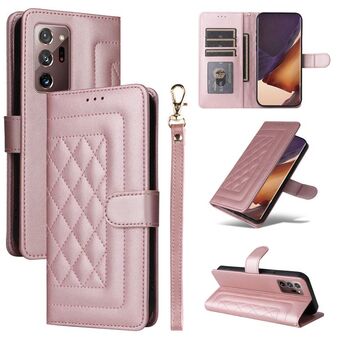 Για Samsung Galaxy Note20 Ultra Rhombic Texture Flip δερμάτινη θήκη τηλεφώνου με κορδόνι (ροζ)