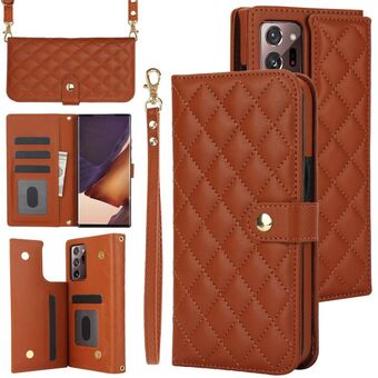 Για το Samsung Galaxy Note20 Ultra Rhombic Texture Flip δερμάτινη θήκη τηλεφώνου με κορδόνι (Μαύρο)