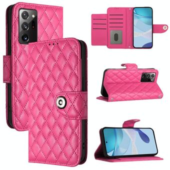 Για Samsung Galaxy Note20 Ultra Rhombic Texture Flip δερμάτινη θήκη τηλεφώνου με κορδόνι (Rose Red)