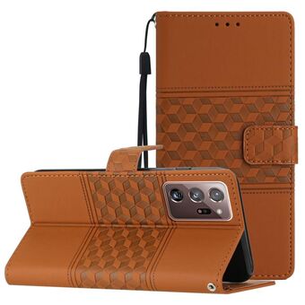 Για Samsung Galaxy Note20 Ultra Diamond ανάγλυφο δέρμα αίσθηση δέρμα τηλέφωνο υπόθεση με κορδόνι (καφέ)