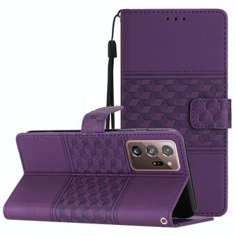 Για Samsung Galaxy Note20 Ultra Diamond ανάγλυφο δέρμα αίσθηση δέρμα τηλέφωνο υπόθεση με κορδόνι (μωβ)
