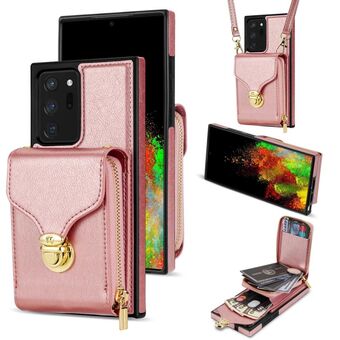 Για Samsung Galaxy Note20 Ultra RFID Slot κάρτα δερμάτινη θήκη τηλεφώνου με μακρύ κορδόνι (ροζ χρυσό)