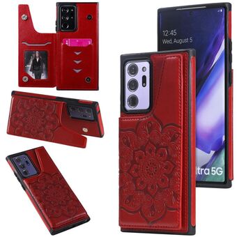 Για Samsung Galaxy Note 20 Ultra λουλούδι ανάγλυφο μοτίβο Shockproof προστατευτική θήκη με θήκη & υποδοχές για κάρτες & πλαίσιο φωτογραφιών (κόκκινο)