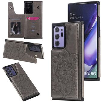 Για Samsung Galaxy Note 20 Ultra λουλούδι ανάγλυφο μοτίβο Shockproof προστατευτική θήκη με θήκη & υποδοχές για κάρτες & πλαίσιο φωτογραφιών (γκρι)