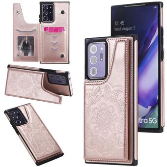 Για Samsung Galaxy Note 20 Ultra λουλούδι ανάγλυφο μοτίβο Shockproof προστατευτική θήκη με θήκη & υποδοχές για κάρτες & πλαίσιο φωτογραφιών (Rose Gold)