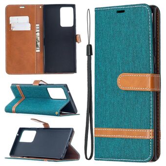 Για Samsung Galaxy Note20 Ultra χρώμα ταιριάζει με τζιν υφή οριζόντια Flip δερμάτινη θήκη με θήκη & υποδοχές για κάρτες & πορτοφόλι & κορδόνι (πράσινο)