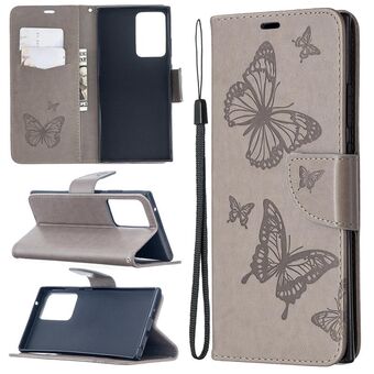 Θήκη Samsung Galaxy Note20 Ultra με ανάγλυφο σχέδιο δύο πεταλούδων, οριζόντια, από δερματίνη PU με βάση στήριξης, θήκη για κάρτες, πορτοφόλι & λουρί (Γκρι)
