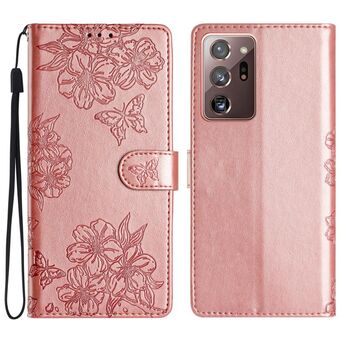 Θήκη τηλεφώνου Samsung Galaxy Note20 Ultra Cherry Blossom Butterfly με ανάγλυφο PU υλικό αίσθησης δέρματος (Μωβ)