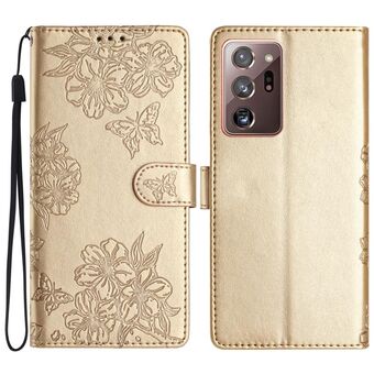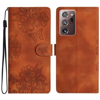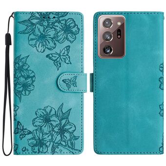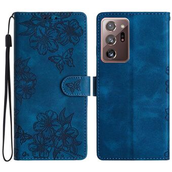 Θήκη τηλεφώνου Samsung Galaxy Note20 Ultra Cherry Blossom Butterfly με ανάγλυφο PU υλικό αίσθησης δέρματος (Μωβ)