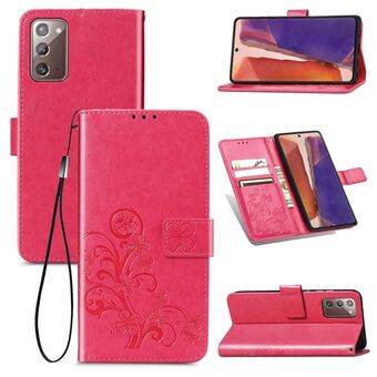 Θήκη δερμάτινη για Samsung Galaxy Note20 με σχέδιο τριφυλλιού, ανάγλυφο κούμπωμα, προστασία κινητού, λουρί, θήκη για κάρτες, πορτοφόλι και λειτουργία βάσης (Ματζέντα)