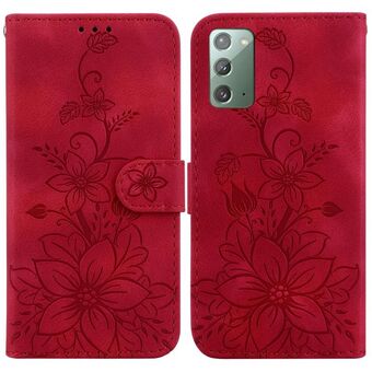 Θήκη Samsung Galaxy Note20 από Δέρμα με Οριζόντιο Άνοιγμα, Δαντέλα Λουλουδιών, με Θήκη, Θήκες Καρτών, Πορτοφόλι & Κορνίζα Φωτογραφιών (Κόκκινο)