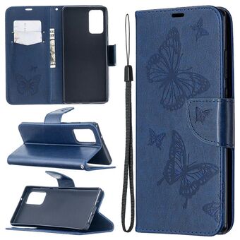 Θήκη Samsung Galaxy Note20 με ανάγλυφο σχέδιο δύο πεταλούδων, οριζόντια, από δερματίνη PU με βάση, θήκη για κάρτες, πορτοφόλι και κορδόνι (Γκρι)