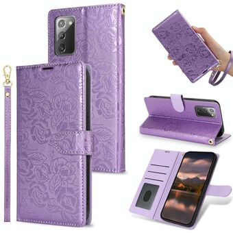Θήκη τηλεφώνου Samsung Galaxy Note20 Λουλούδι, πολυλειτουργική, crossbody, με φερμουάρ και δερμάτινη (Μαύρο)