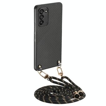 For Samsung Galaxy Note20 Carbon Fiber Texture Leather Back Cover Phone Case with Crossbody Strap(Khaki)