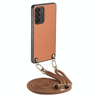 For Samsung Galaxy Note20 Carbon Fiber Texture Leather Back Cover Phone Case with Crossbody Strap(Brown)