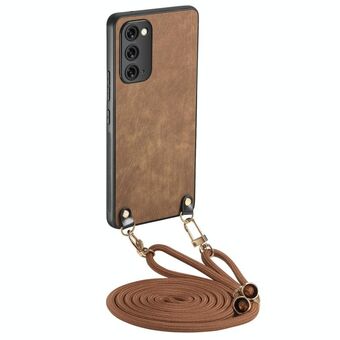 For Samsung Galaxy Note20 Vintage Leather PC Back Cover Phone Case with Crossbody Strap(Brown)