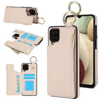 For Samsung Galaxy A12 RFlD Anti-theft Double Buckle Ring Zipper Card Phone Case(White)