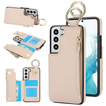 For Samsung Galaxy S21 FE 5G RFlD Anti-theft Double Buckle Ring Zipper Card Phone Case(White)