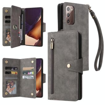 For Samsung Galaxy Note20 Retro Leather Zipper Wallet Back Phone Case(Purple)
