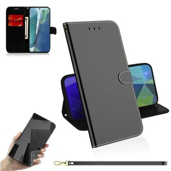 Για Samsung Galaxy Note20 Απομιμητική επιφάνεια καθρέφτη Οριζόντια Flip δερμάτινη θήκη με θήκη & υποδοχές για κάρτες & πορτοφόλι & κορδόνι (Μαύρο)