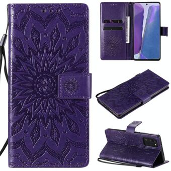 Για Samsung Galaxy Note20 5G Sun ανάγλυφο μοτίβο οριζόντια Flip δερμάτινη θήκη με υποδοχή για κάρτες & κάτοχος & πορτοφόλι & κορδόνι (μωβ)