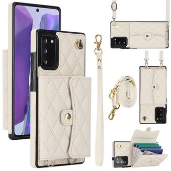 Για Samsung Galaxy Note20 Crossbody Rhombic οριζόντια πορτοφόλι δερμάτινη θήκη τηλεφώνου (λευκό)