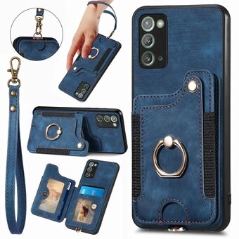 Θήκη τηλεφώνου πορτοφόλι με δακτύλιο και πολλές θήκες καρτών για Samsung Galaxy Note20, με ρετρό αίσθηση (Μωβ)