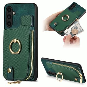 Για Samsung Galaxy Note20 Cross Δερμάτινο δαχτυλίδι κάθετη φερμουάρ πορτοφόλι πίσω υπόθεση τηλεφώνου (πράσινο)