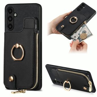 Για Samsung Galaxy Note20 Cross Δερμάτινο δαχτυλίδι κάθετη φερμουάρ πορτοφόλι πίσω θήκη τηλεφώνου (μαύρο)