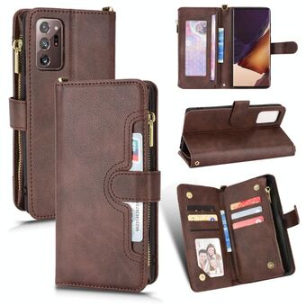 For Samsung Galaxy Note20 Litchi Texture Zipper Leather Phone Case(Brown)