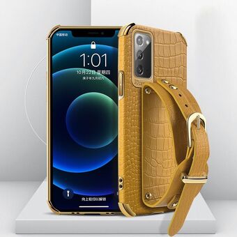 For Samsung Galaxy Note20 Electroplated TPU Crocodile Pattern Leather Case with Wrist Strap(Yellow)
