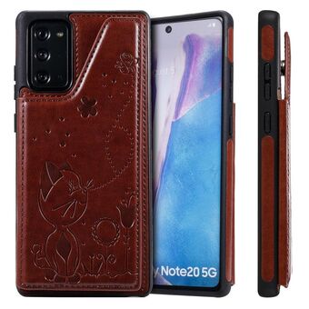 Θήκη προστασίας με ανάγλυφο σχέδιο γάτας και μέλισσας, αντικραδασμική, με θήκες για κάρτες & κορνίζα φωτογραφίας για Samsung Galaxy Note20 (Μπλε)