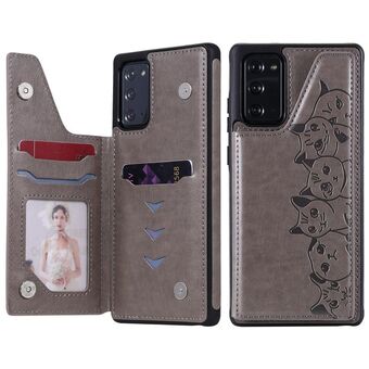 Θήκη προστασίας με ανάγλυφο σχέδιο έξι γατών, με θήκη και υποδοχές για κάρτες & κορνίζα φωτογραφιών για Samsung Galaxy Note20 (Μαύρο)