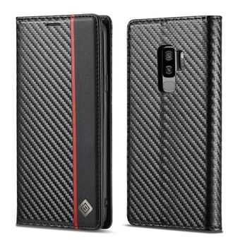 LC.IMEEKE Carbon Fiber PU + TPU Horizontal Flip Leather Case with Holder & Card Slot & Wallet For Samsung Galaxy S9+(Vertical Black) (LC.IMEEKE)