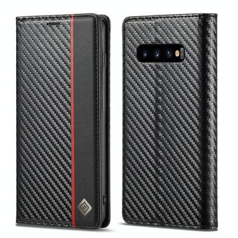 LC.IMEEKE Carbon Fiber PU + TPU Horizontal Flip Leather Case with Holder & Card Slot & Wallet For Samsung Galaxy S10(Vertical Black) (LC.IMEEKE)