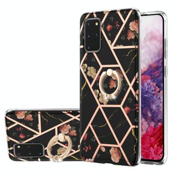 For Samsung Galaxy S20+ Electroplating Splicing Marble Flower Pattern TPU Shockproof Case with Rhinestone Ring Holder(Black Flower)